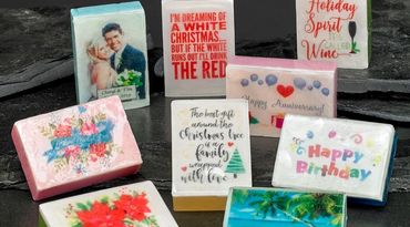 It includes 3 soaps, 2 that look like a slice of cake and one picture soap saying Happy Birthday. Fragranced in Vanilla